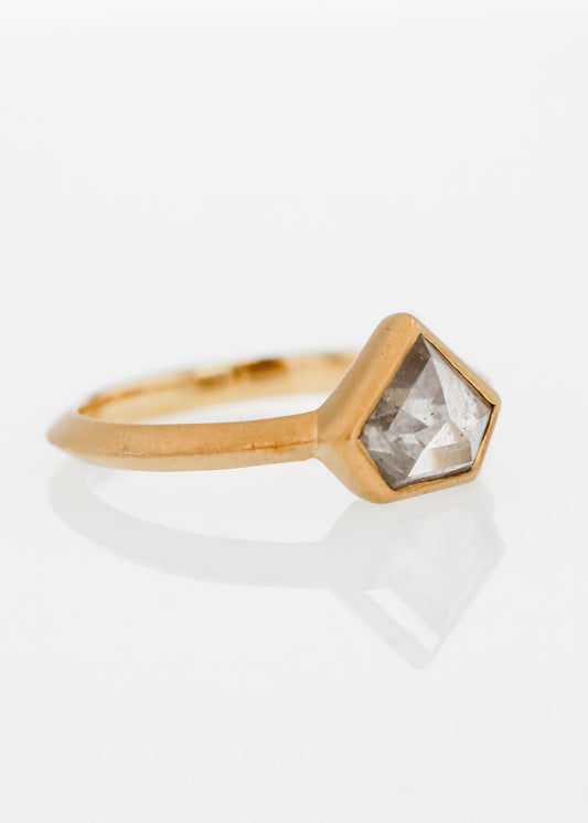 The Lyra | .95ct Hexagon Salt and Pepper Diamond | Yellow Gold