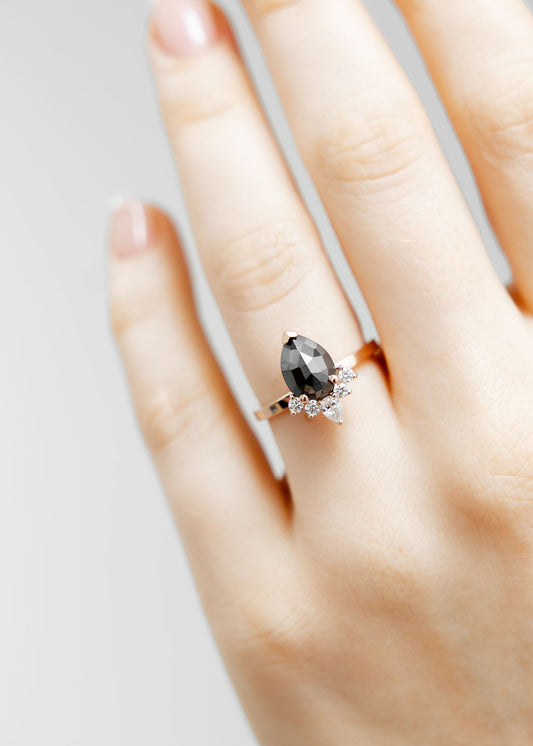 The Celeste | 1.68ct Pear Salt and Pepper Diamond | Rose Gold