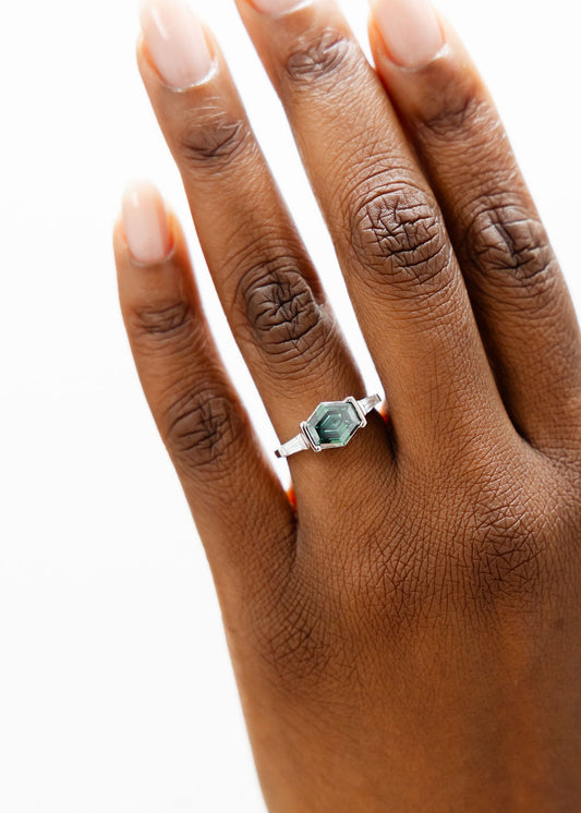 The Wolfe | 2.02ct Hexagon Teal Moissanite | White Gold