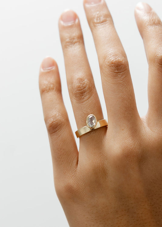 The Phoenix | .41ct Rose Cut Oval Moissanite | Yellow Gold