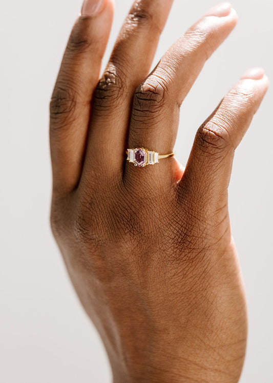The Portia Ring | .94 Hexagon Pink Sapphire | Yellow Gold