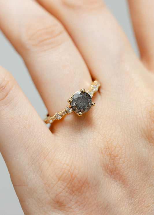 The Saturn Ring | 1.16ct Round Salt & Pepper | Yellow Gold