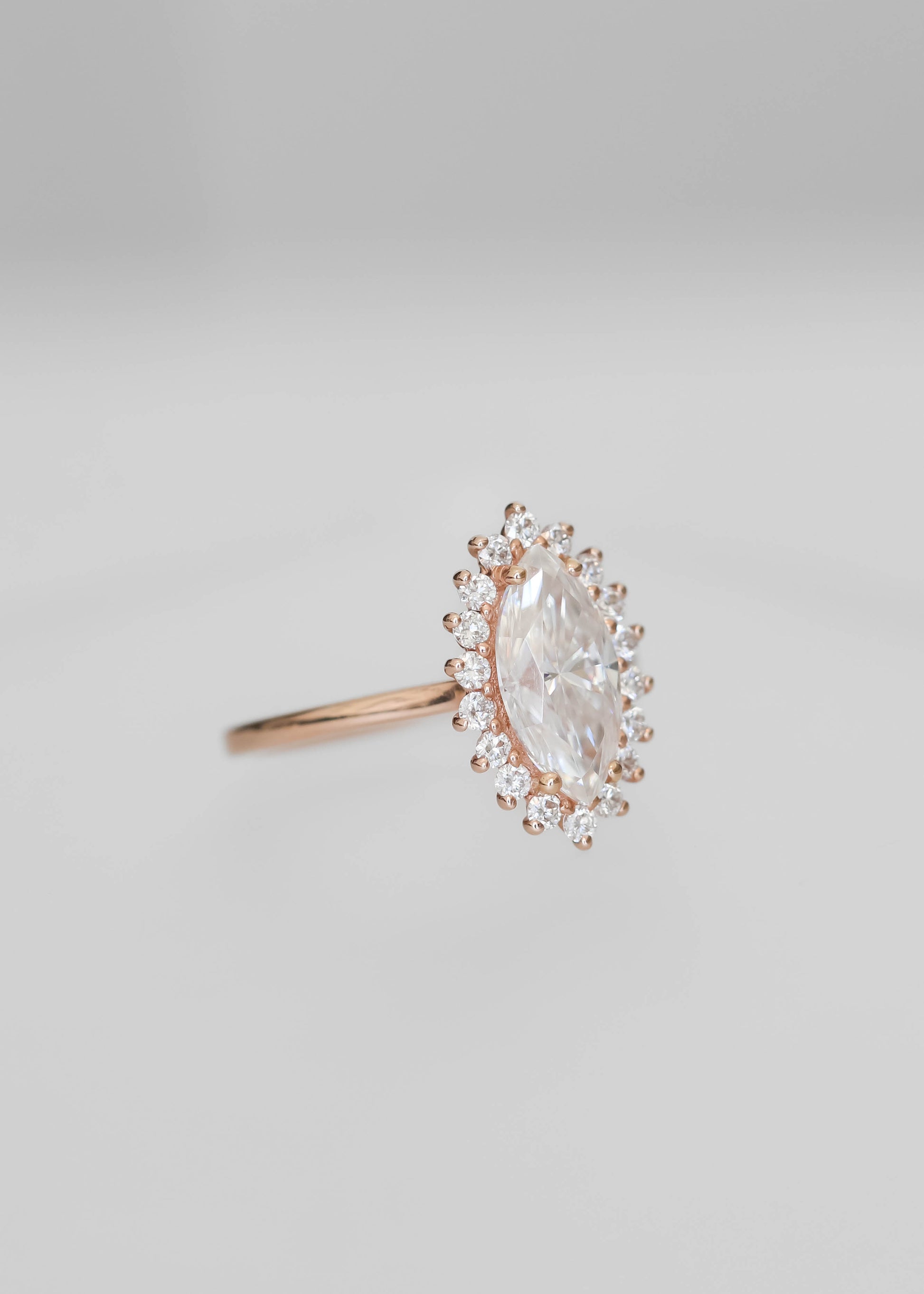 14K Rose Gold • 1.5ct Marquise Moissanite • Diamond Halo